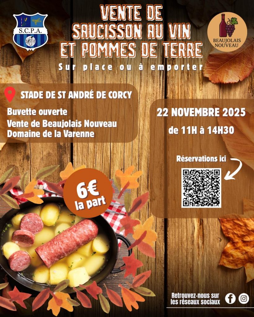 À l’occasion de la vente du Beaujolais Nouveau, dégustez notre savoureux saucisson au vin et pommes de terre, préparé avec soin et à partager entre amis ou en famille. À emporter ou à savourer sur place dans une ambiance conviviale.