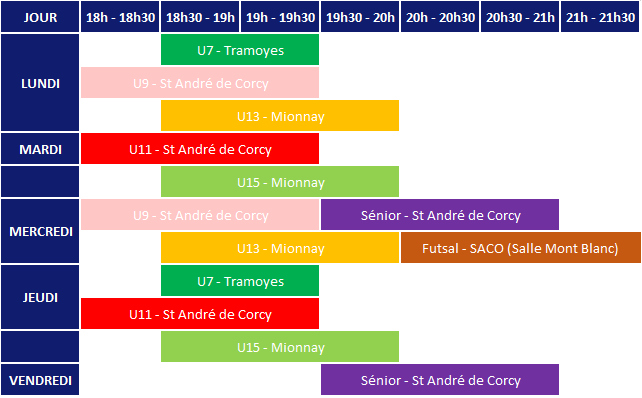 Plannings des entrainements